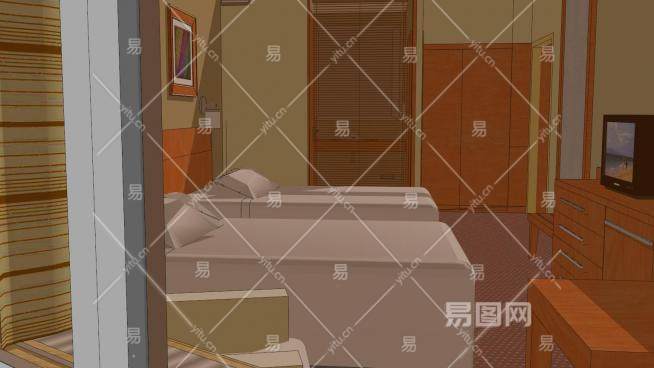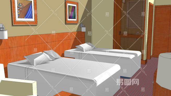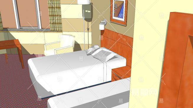 酒店宾馆房间卧室SU模型下载_sketchup草图大师SKP模型
