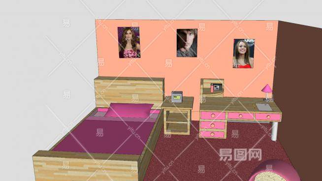 粉红色卧室装修SU模型下载_sketchup草图大师SKP模型