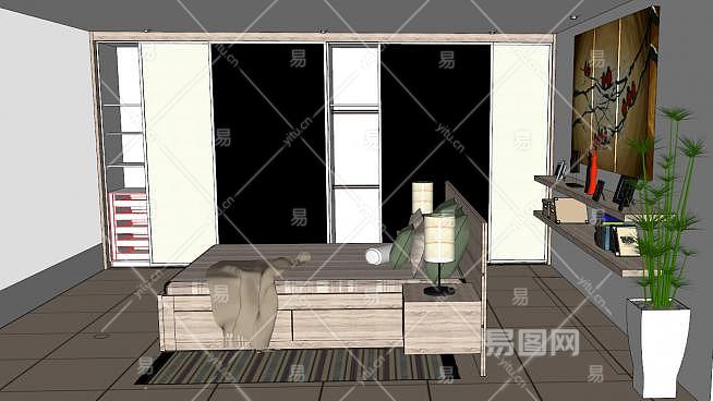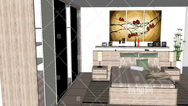 夫妇卧室房间SU模型下载_sketchup草图大师SKP模型