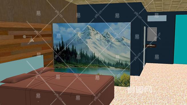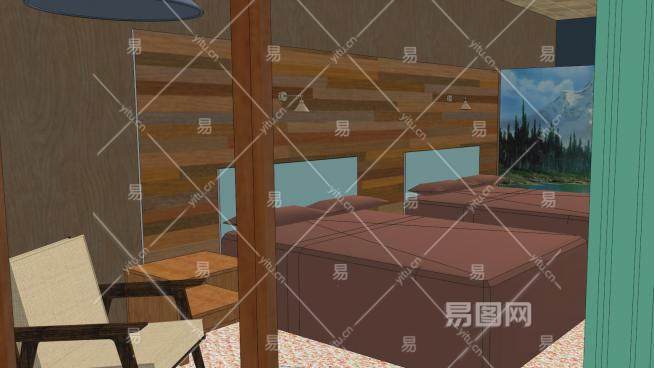 汽车旅馆卧室房间SU模型下载_sketchup草图大师SKP模型
