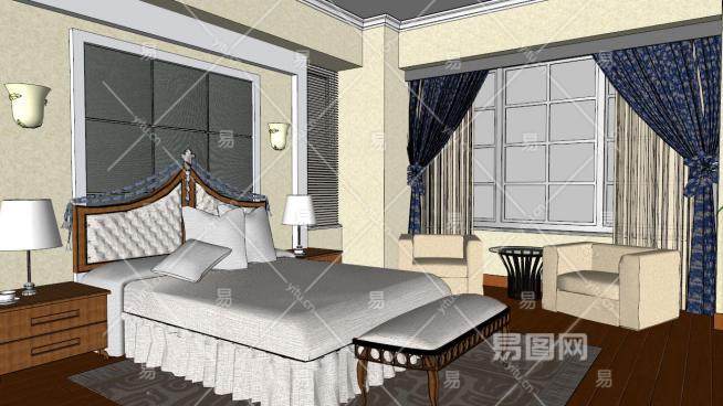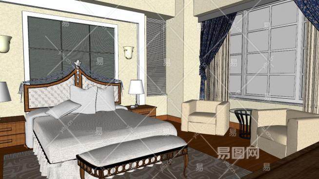 酒店卧室su模型下载_sketchup草图大师SKP模型