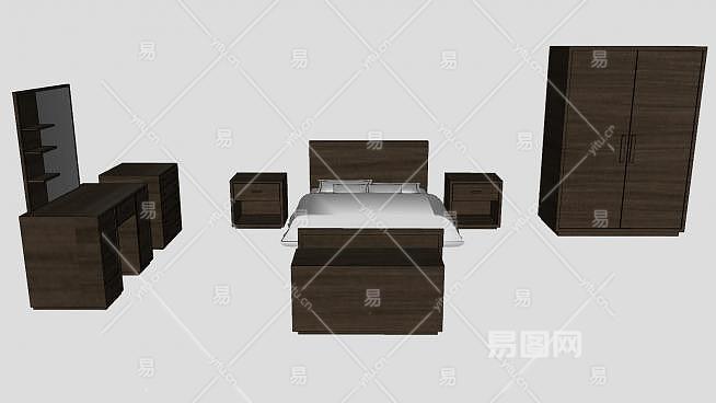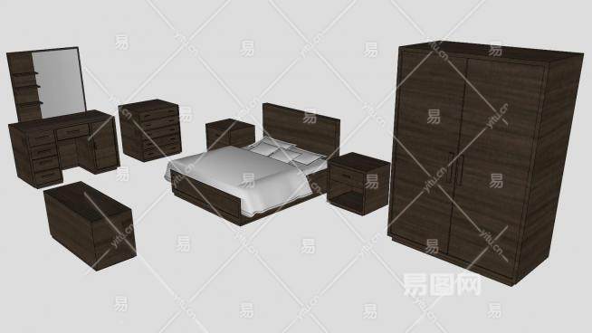 简欧风格卧室整体家具SU模型下载_sketchup草图大师SKP模型