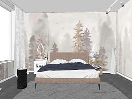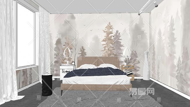 北欧小清新背景墙卧室SU模型下载_sketchup草图大师SKP模型