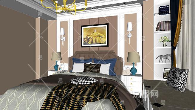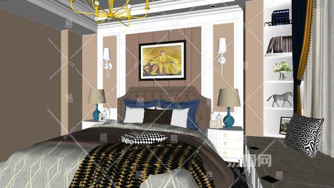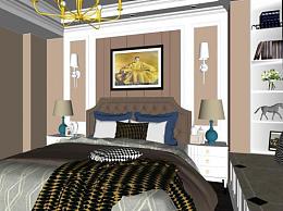 简欧轻奢卧室设计SU模型下载_sketchup草图大师SKP模型