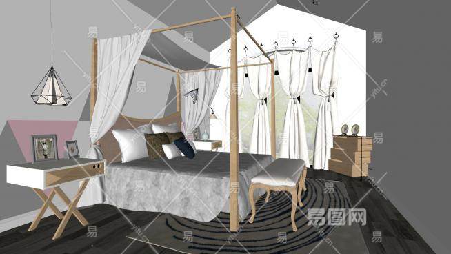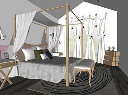 北欧原木家具卧室SU模型下载_sketchup草图大师SKP模型