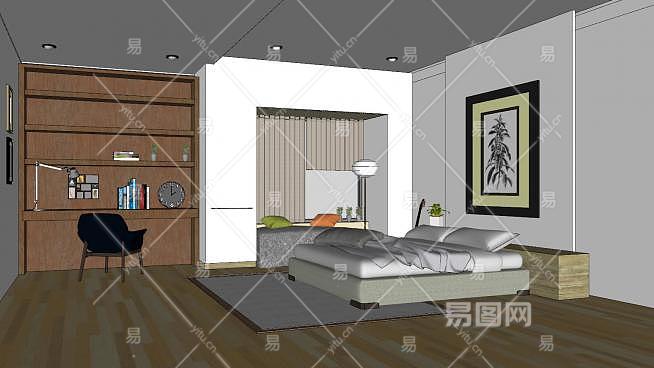 现代整体卧室家装SU模型下载_sketchup草图大师SKP模型