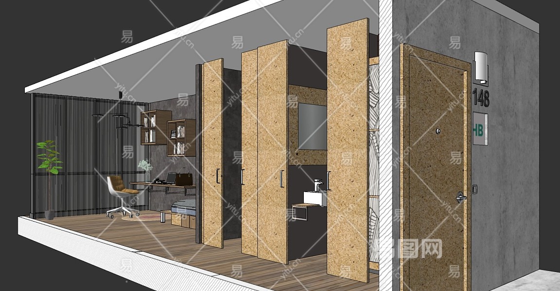 当前的位置:首页 > sketchup > sketchup模型 > 家装 > 卧室 > 现代单身公寓小户型室内整体 客厅卧室卫生间