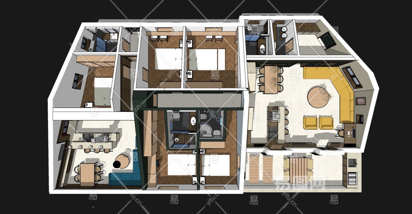 当前的位置:首页 > sketchup > sketchup模型 > 家装 > 卧室 > 现代住宅整体 客厅卧室饭厅