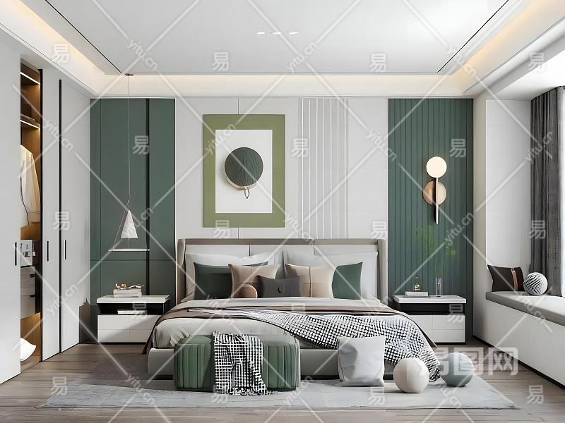 现代绿色系卧室
