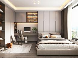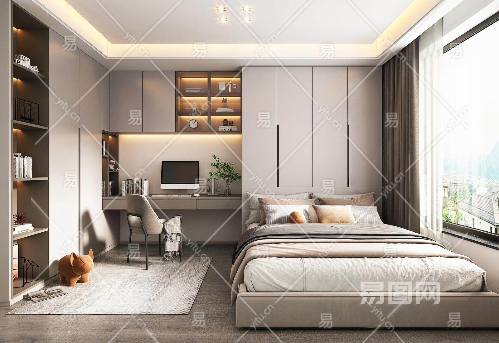 现代榻榻米卧室 办公桌 学习桌椅 衣柜