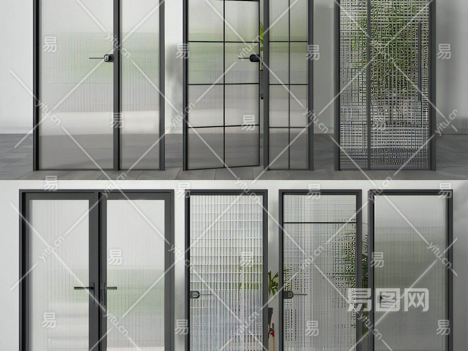 现代单开门玻璃推拉门