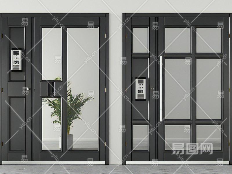 现代黑框防盗玻璃门