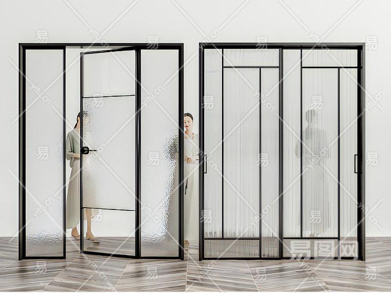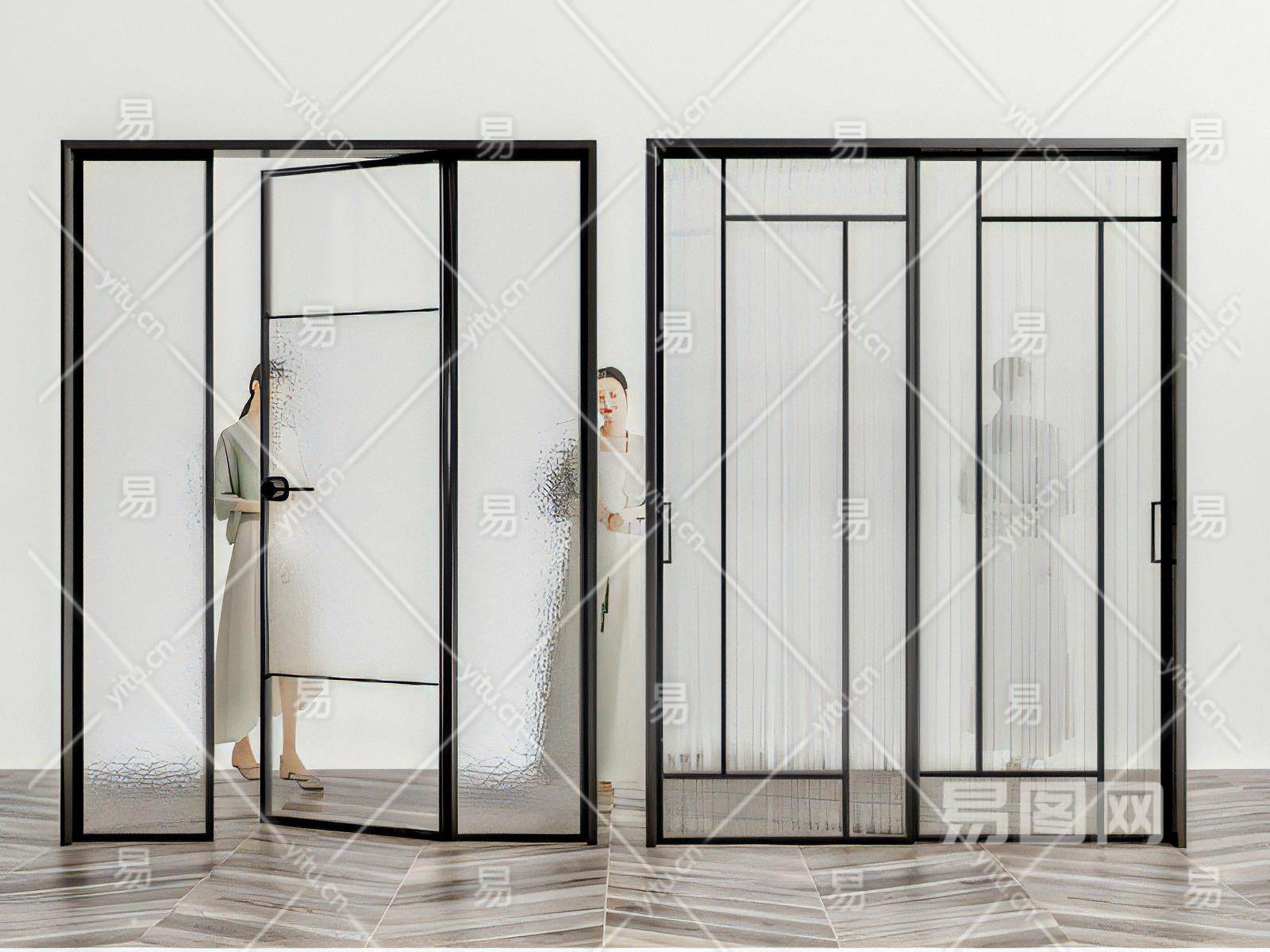 现代玻璃门单开门
