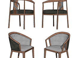 新中式单椅su草图模型下载