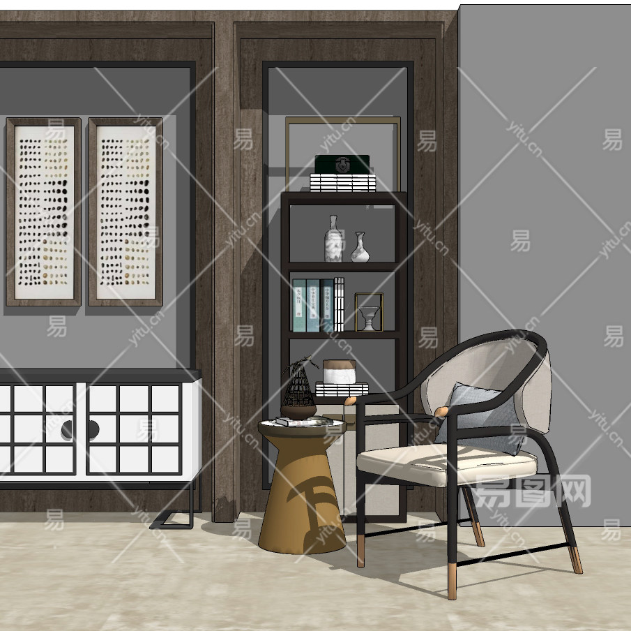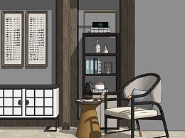 新中式休闲椅组合su草图模型下载