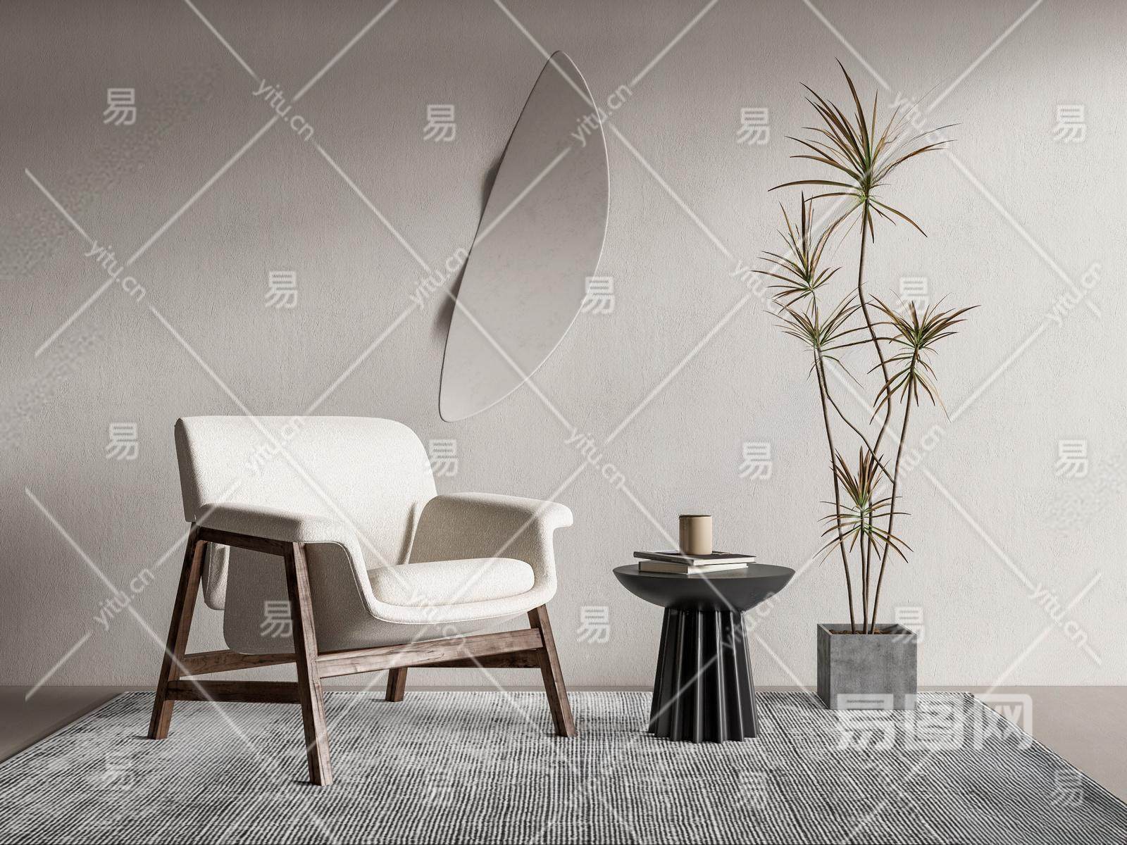 侘寂休闲椅 绿植盆栽 墙饰挂件