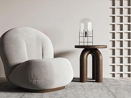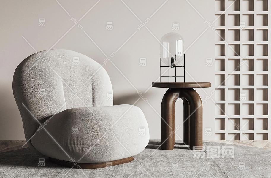 侘寂风单人沙发 布艺沙发 休闲沙发 边几 角几 台灯