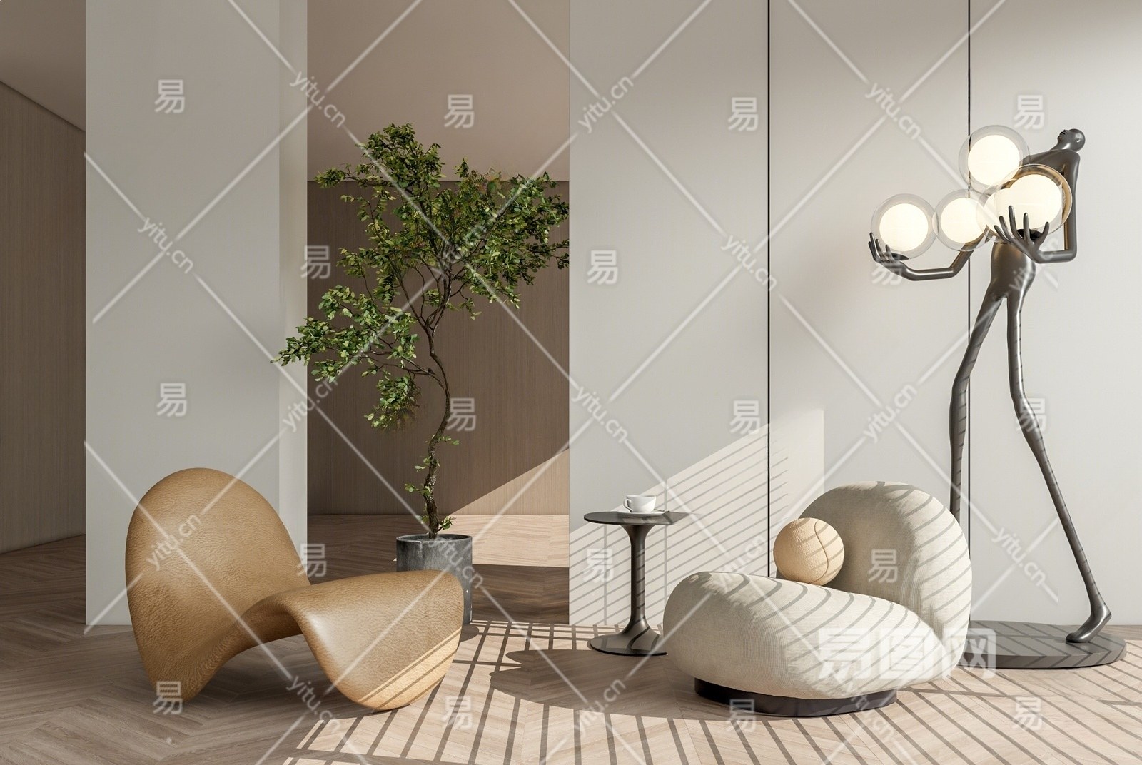 现代休闲椅 舌头椅 白胖子雪梨椅 雕塑灯 盆栽 角几咖啡杯