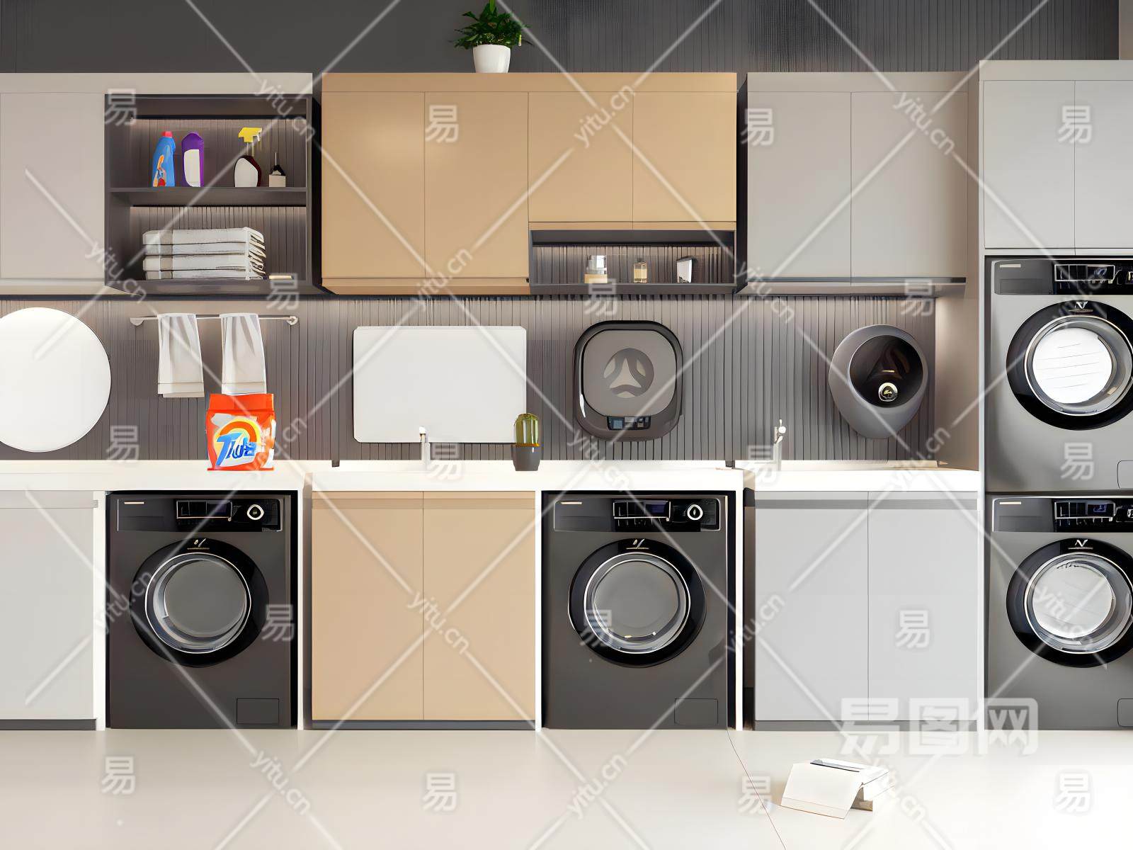 现代阳台洗衣机柜