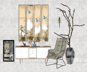 现代中式玄关家装SU模型下载_sketchup草图大师SKP模型