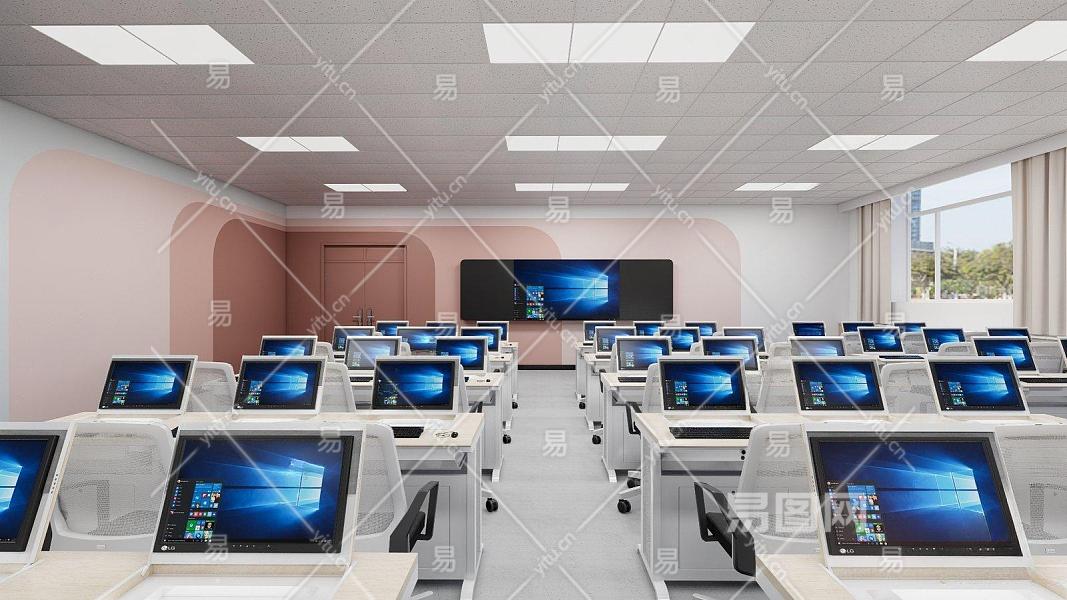 现代电脑教室 电脑桌椅 电脑机房 计算机教室 微机室