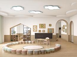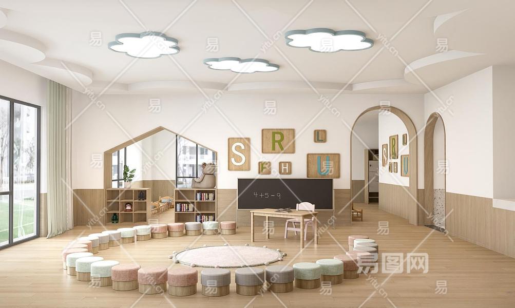现代幼儿园内部 幼儿教室 午休房 幼儿园走廊