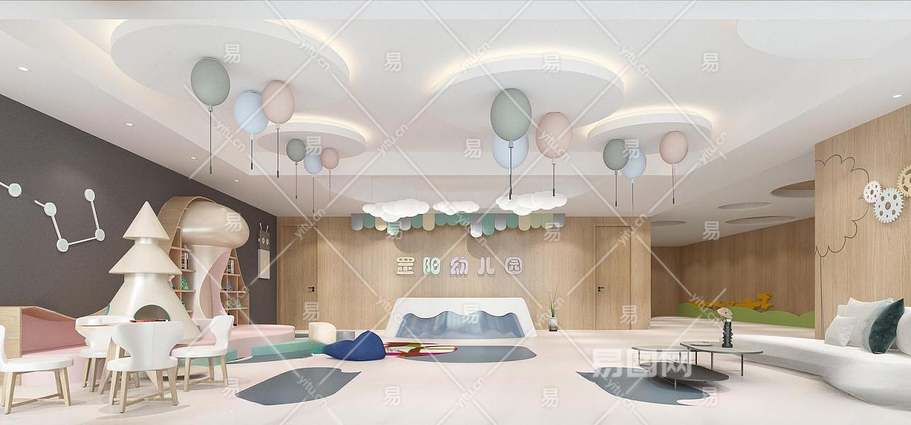 现代幼儿园前台大厅 幼儿园大厅蘑菇书柜书架