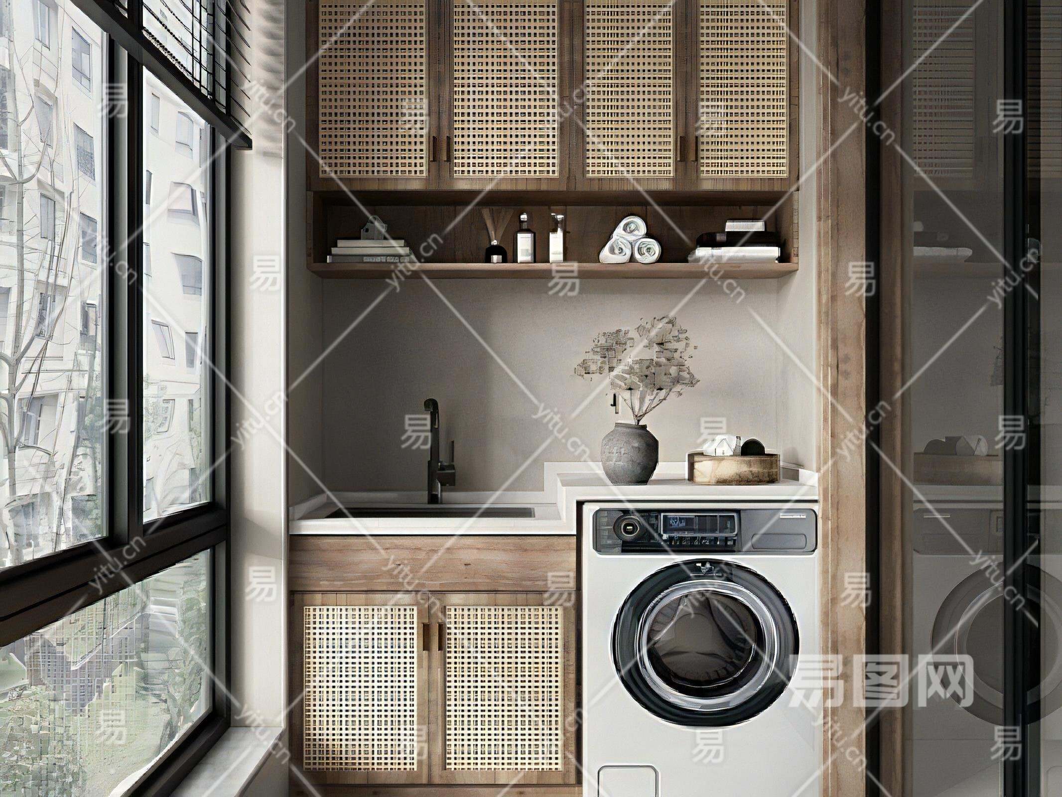 侘寂家居阳台洗衣柜SU模型