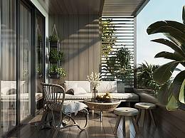 现代家居阳台沙发休闲椅茶几绿植SU模型