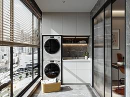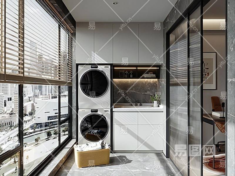 现代生活阳台洗衣机洗衣机柜长虹玻璃百叶帘SU模型