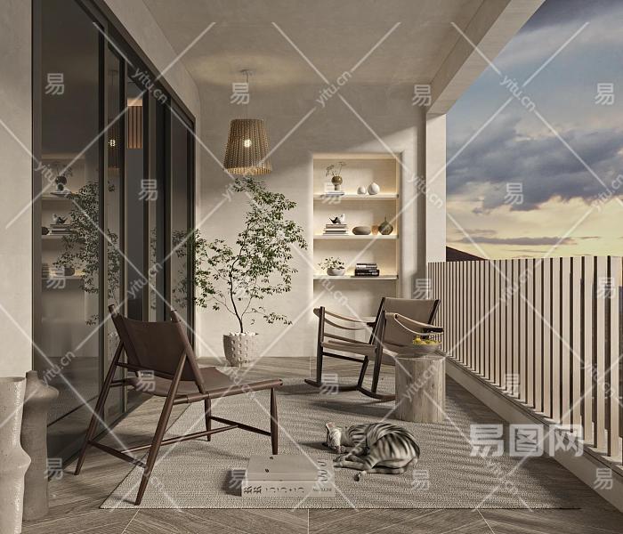 侘寂家居休闲阳台 阳台休闲椅 藤编吊灯