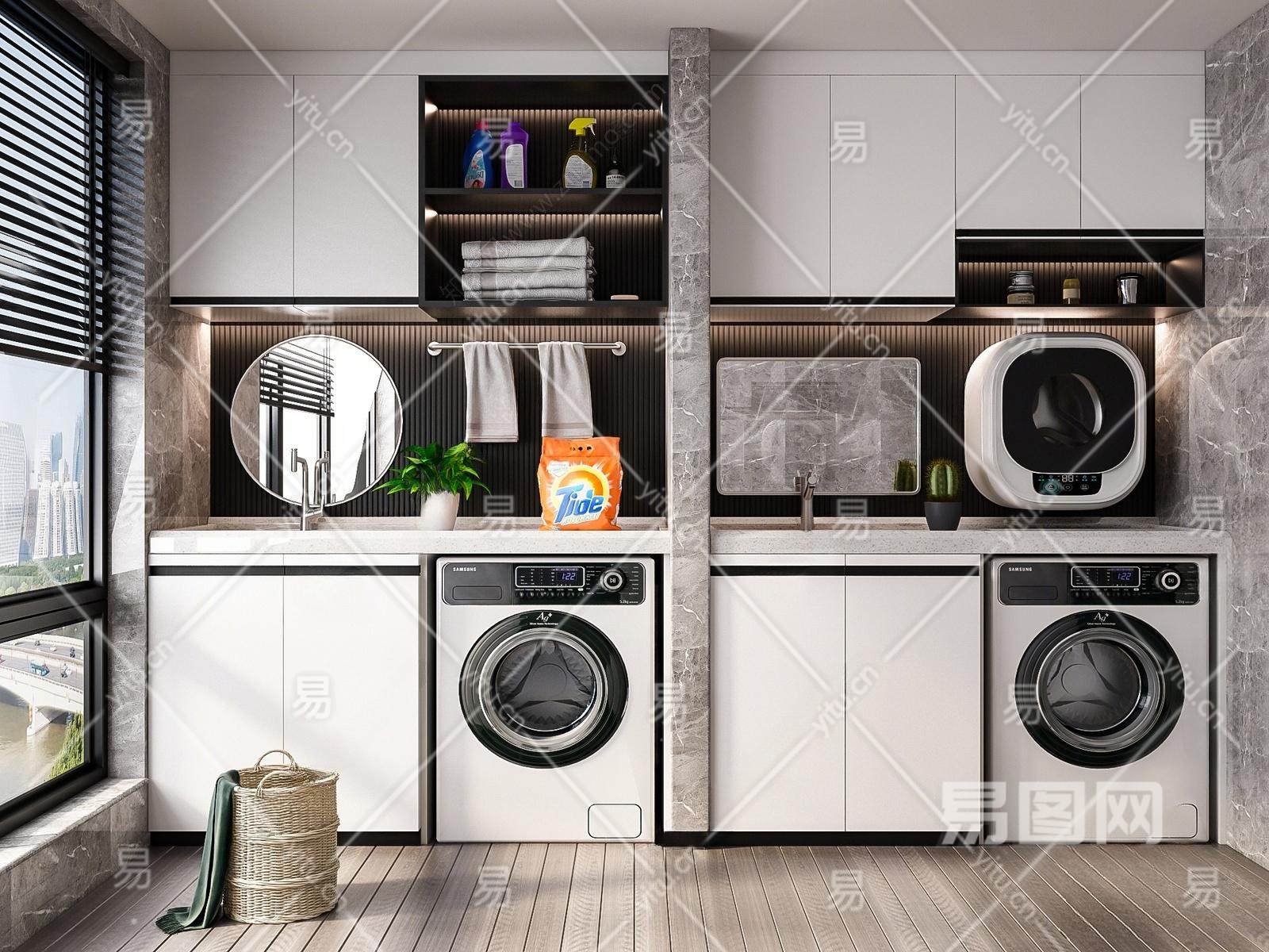 现代阳台 洗衣机柜组合
