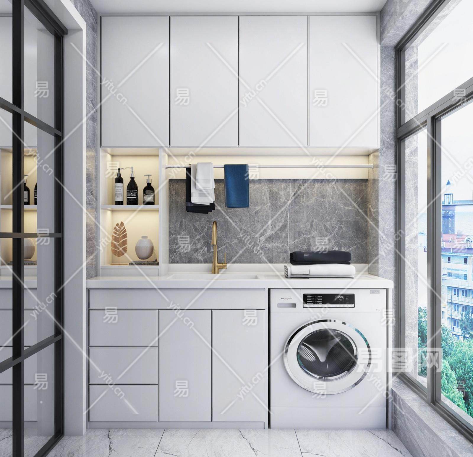 现代阳台 阳台柜 洗衣机 阳台 生活阳台 洗衣柜