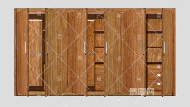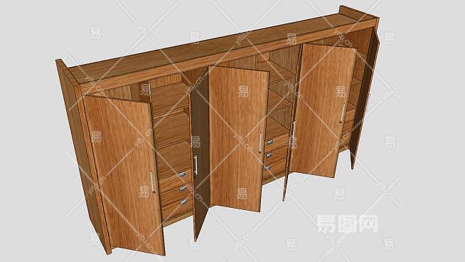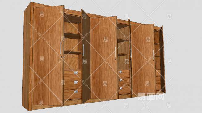 一字敞开女佣衣柜SU模型下载_sketchup草图大师SKP模型