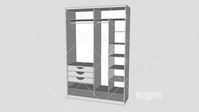 现代白色抽屉衣柜SU模型下载_sketchup草图大师SKP模型