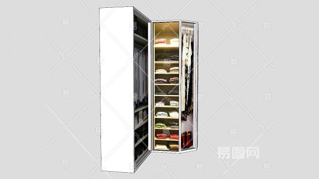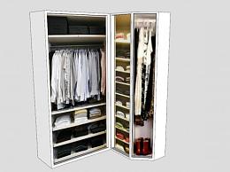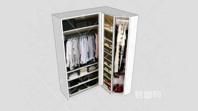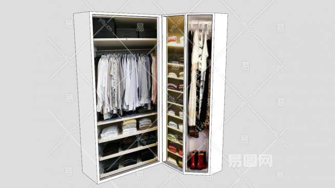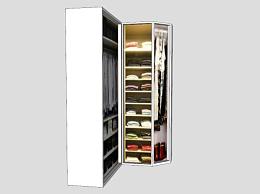 实木转角白色衣柜SU模型下载_sketchup草图大师SKP模型