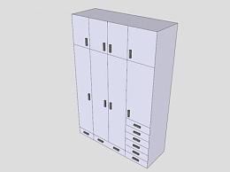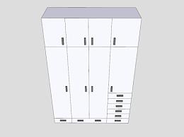 现代白色四门衣柜SU模型下载_sketchup草图大师SKP模型