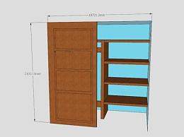 实木壁墙推拉门衣柜SU模型下载_sketchup草图大师SKP模型