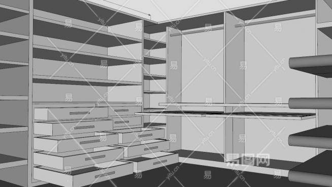 卧室白色壁柜SU模型下载_sketchup草图大师SKP模型