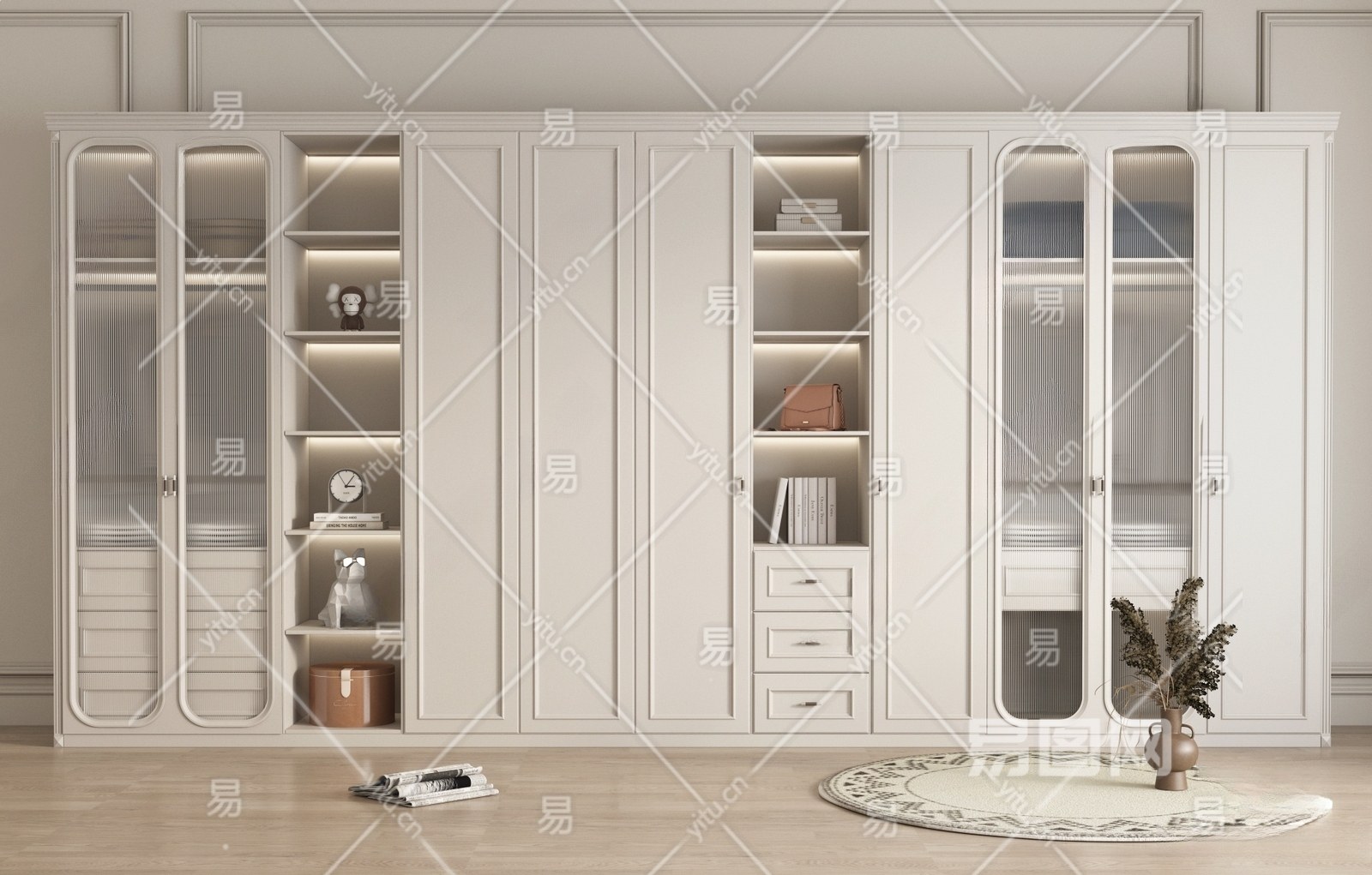 法式奶油风衣柜 木材 非转角 成人 平开门