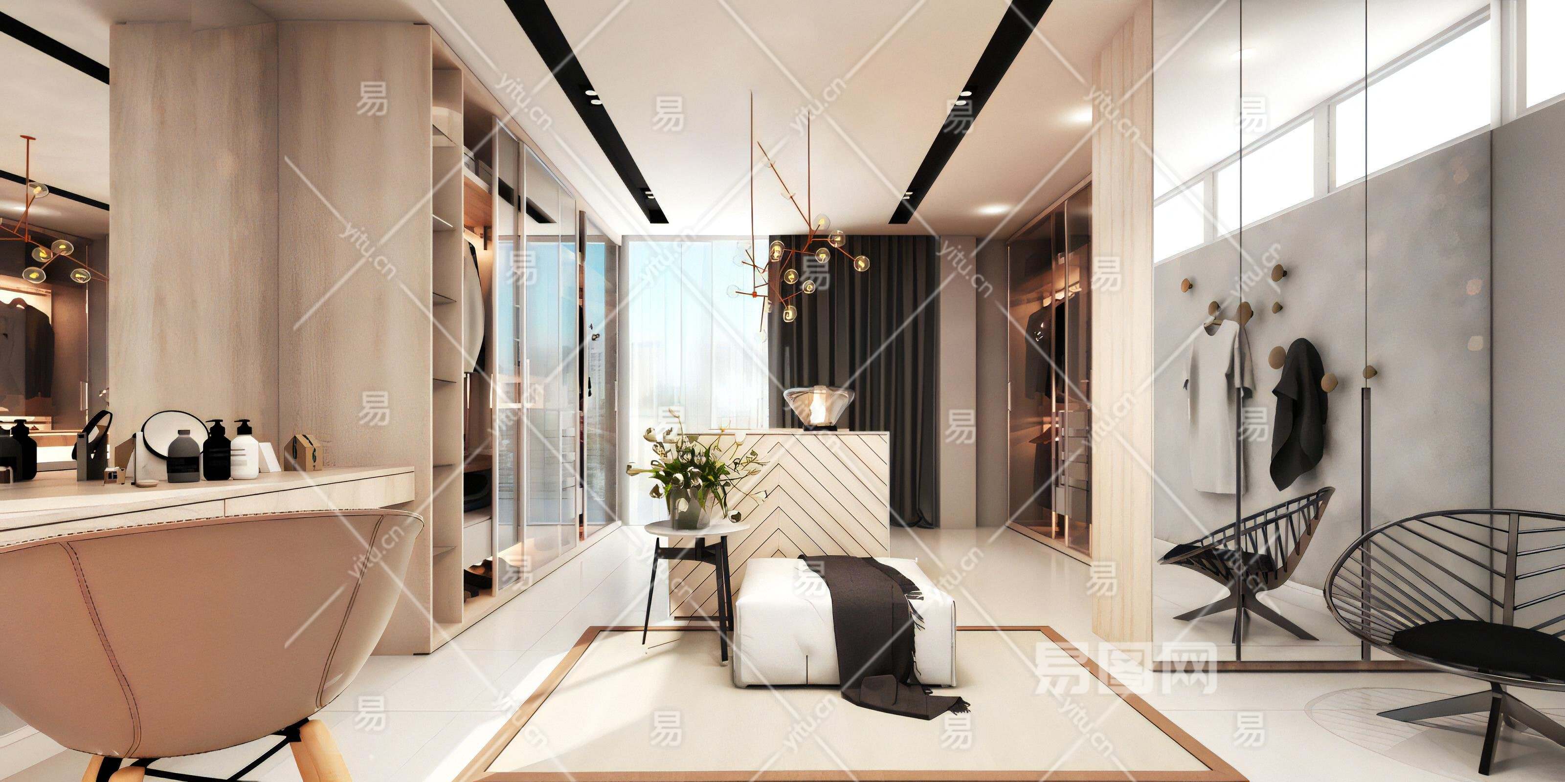 现代北欧轻奢简约衣帽间