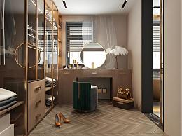 现代衣帽间衣橱梳妆台梳妆凳衣柜鞋子包包