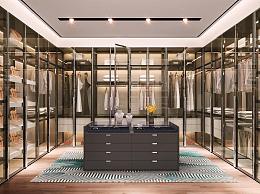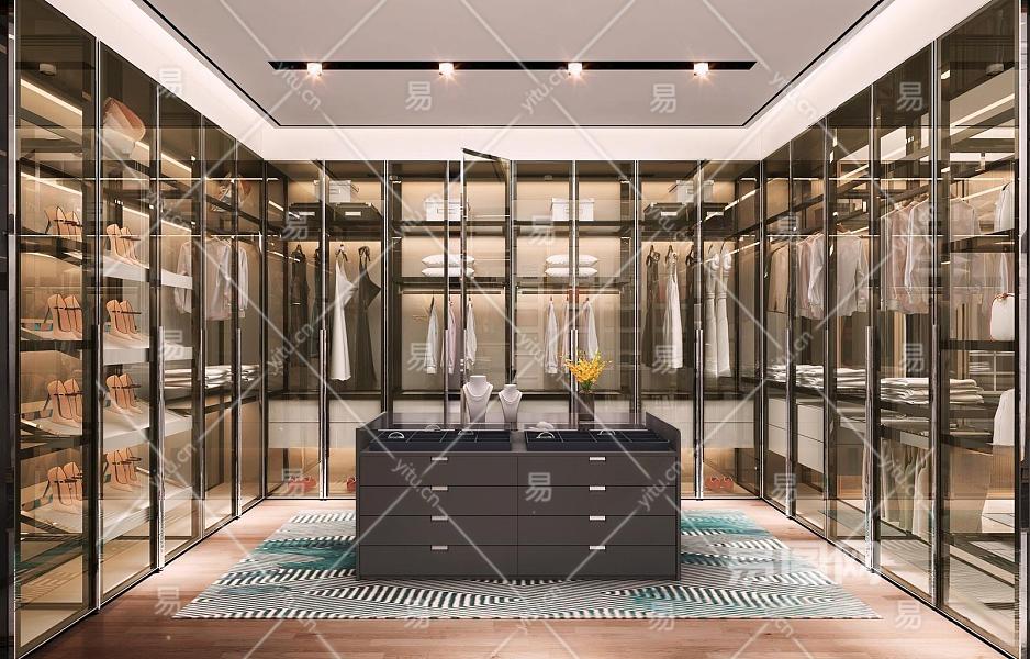 现代衣帽间 型材玻璃衣帽间 中岛台
