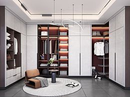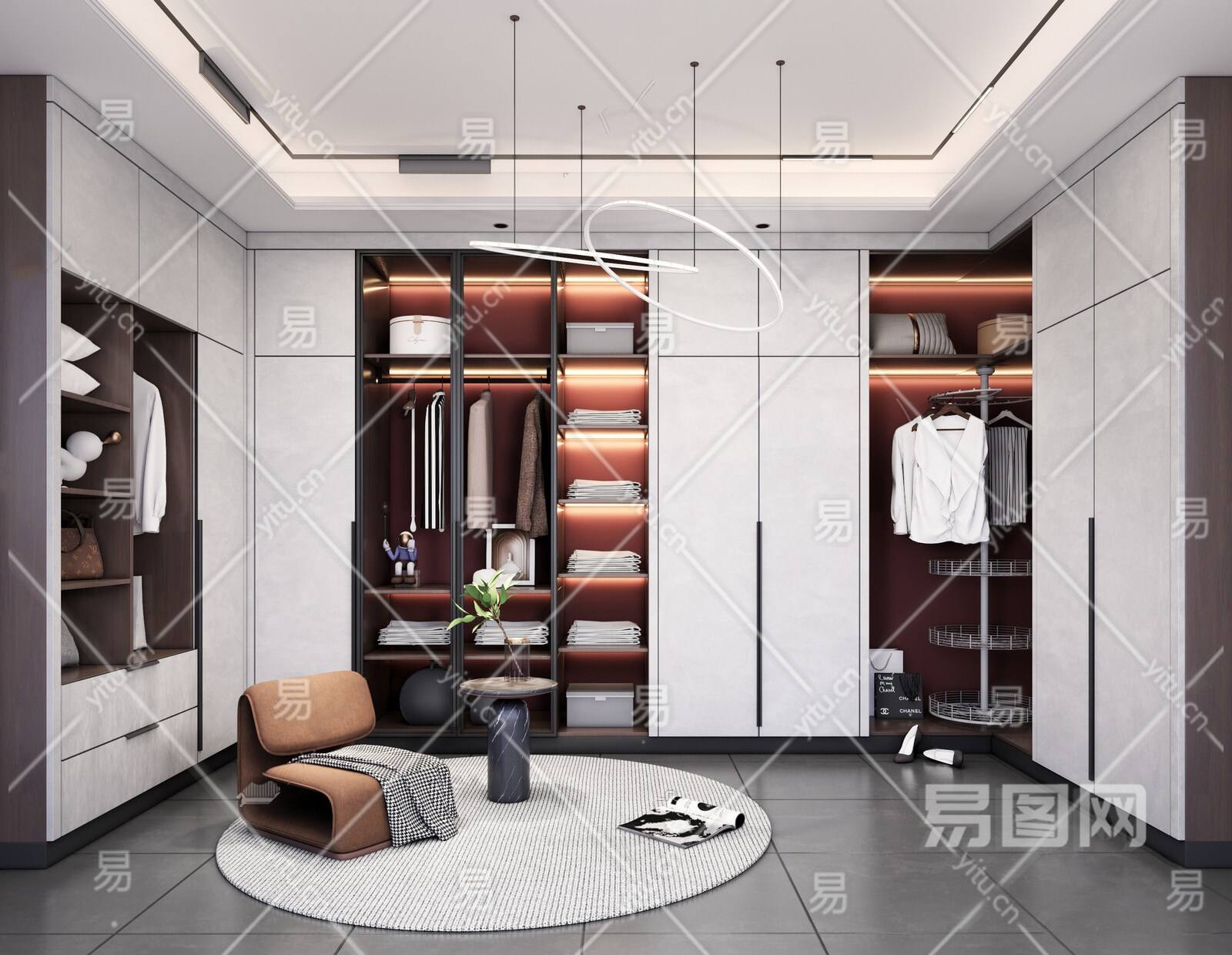 现代衣帽间 雕塑 摆件 休闲椅 衣服 服饰 吊灯