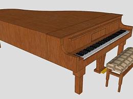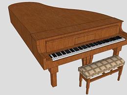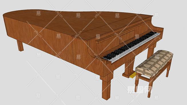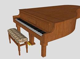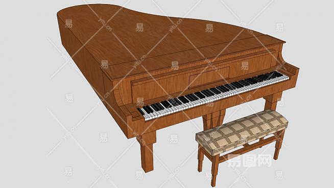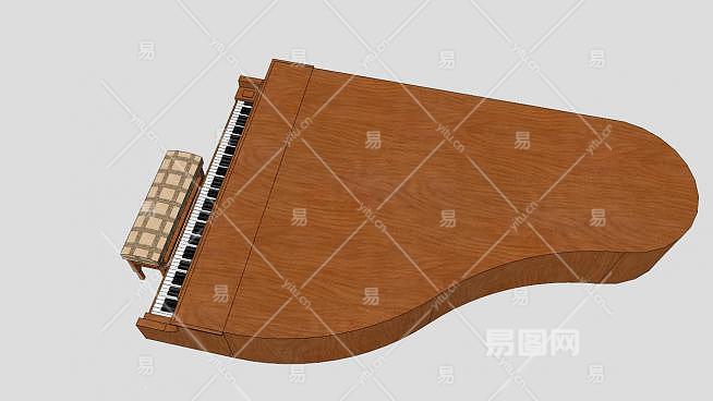 木质棕色三角钢琴SU模型下载_sketchup草图大师SKP模型