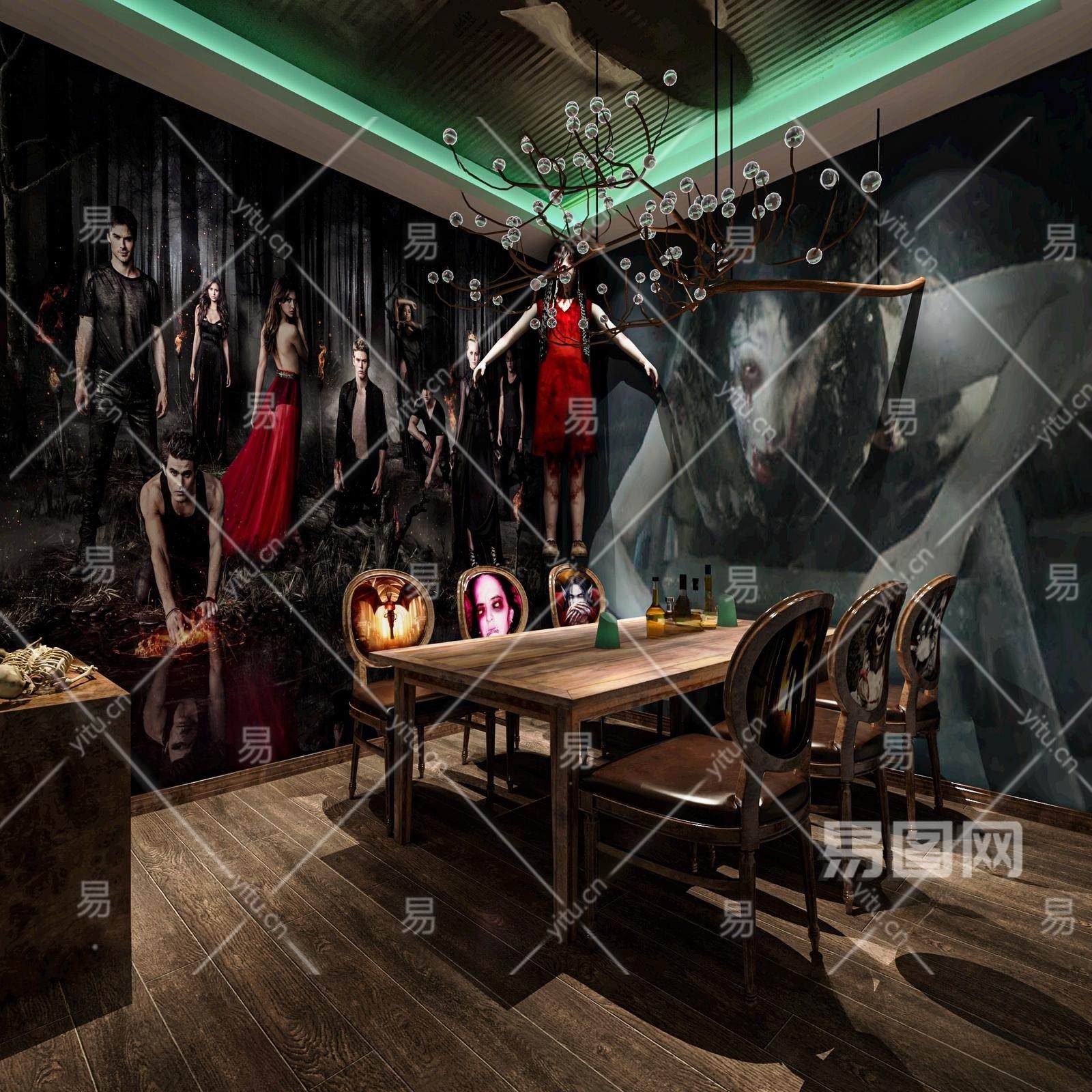 现代剧本杀包间 桌游室 推理 三国杀 密室 桌椅 恐怖密室 狼人杀