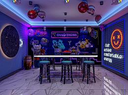 现代剧本杀包间 桌游室 推理 三国杀 密室 桌椅 狼人杀 霓虹灯字
