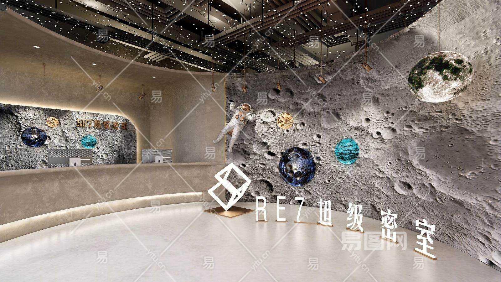 现代密室逃脱大厅 剧本杀 宇航员雕塑