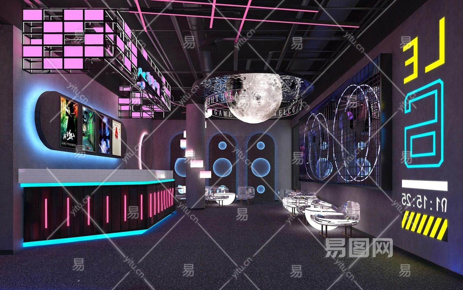 现代赛博朋克风密室逃脱剧本杀大厅
