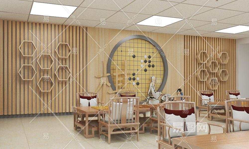 新中式棋牌室 棋牌室文化墙 象棋 老年人活动室